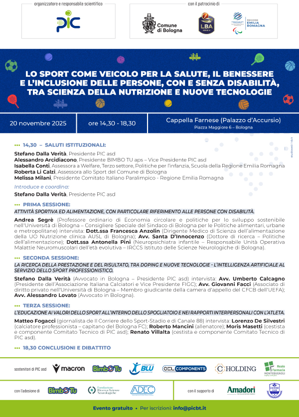 L’associazione dilettantistica sportiva PIC nasce con l’obiettivo primario di favorire l’esercizio dell’attività sportiva, in ogni ambito e disciplina, da parte di persone – di ogni età, ma principalmente bambini ed adolescenti - che per patologie e forme di disabilità, di vario genere e gravità, trovino limitazioni nell’accesso allo sport.
